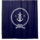 Navy Blue Nautical Rope and Anchor Monogram Shower Curtain