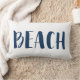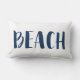 Perfect for your bedding or seating area - this navy blue and white beach lumbar throw pillow makes a great accent to your home's decor. This coastal or beach house throw pillow features the word "Beach" on the front and a navy blue and white nautical stripe on the back.