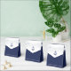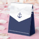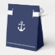Navy blue nautical wedding favour boxes (tent favour box with white ribbon) with anchor