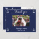 Navy blue nautical wedding Thank you postcards with customisable text and picture - replace image with your photo