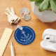 This Simple design features a detailed anchor in white, white circle and the text of your choosing on a beautiful navy blue background. The back is the same blue, has a graphic image of a nautical rope knot, and can include the name of your choosing.