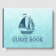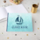 Invite your wedding guests to share their wishes with this nautical guest book design, featuring navy-blue nautical wind-sailing boat vintage illustration. Your surname appears under in elegant dark-blue lettering, with your first names and wedding date.