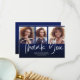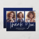 Navy blue ombre' graduation 3-photo "Thank you" card personalised with your photos, your name, school name, and graduation year.