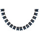 An elegant modern Wedding bunting in a navy blue watercolor ombre effect with faint brush strokes. To the top are two strings of sparkling string tea-lights with the background serving as a night sky.