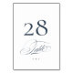Navy Blue on White Elegant Calligraphy Wedding Table Number