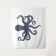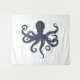 Elegant navy-blue vintage octopus illustration nautical design on white with matching blue border.