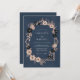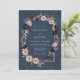 This design features a sophisticated navy blue backdrop accented by lustrous rose gold botanical outlines. Elegant blush pink and deep indigo anemones create a striking floral arrangement perfect for a formal evening event. The moody colour palette combines dark tones with metallic highlights for a romantic, polished look.