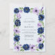 A lush arrangement of watercolor indigo anemones and soft purple petals creates a romantic botanical display. Vibrant green leaves provide a fresh contrast against the clean white backdrop. This design captures a sophisticated springtime aesthetic with a rich, cool-toned palette.
