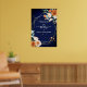 Orange and white roses sage eucalyptus greenery navy blue background gold geometrical frame floral personalised name wedding welcome sign poster instant download