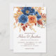 Navy Blue Orange Terracotta Elegant Wedding Invitation