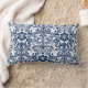 Navy Blue Ornamental Floral Damask Pattern Lumbar Cushion
