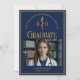 This navy blue and gold custom osteopathic medical school graduation announcement for a DO or an osteopath doctor features an osteopathic medical caduceus symbol and your college photo for the class of 2025. Customise with your graduating year for a great personalised university graduate photograph card.