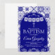Elegant Spanish-language baptism invitation featuring delicate Navy Blue papel picado banner details on a warm Navy Blue background. Inspired by traditional Mexican décor, this refined design blends cultural heritage with a timeless and reverent aesthetic. A classic cross at the top adds a meaningful touch, making it perfect for celebrating your child’s bautizo in church surrounded by family and friends. The intricate ornamental borders and graceful typography create a sophisticated and culturally inspired look. Fully customizable with name, date, time, church location, and reception details. Coordinates beautifully with matching thank you cards, menus, signage, favor tags, and reception décor from the Navy Blue Papel Picado collection.