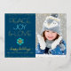 “Peace, joy & love.” A fun, playful, real gold foil and turquoise blue snowflake illustration, real gold foil confetti dots, and real gold foil and turquoise modern typography on a navy blue background, along with the custom photo of your choice, help you usher in the holiday season. A random faux gold foil snowflake pattern overlays turquoise blue on the back. Feel the warmth and joy of the holidays whenever you send this stunning, graphic, personalised photo greeting card. Matching envelopes, stickers, tote bags, wrapping paper, serving trays, home décor, and more are also available. Send this to someone special!