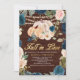 Navy Blue Peach Floral Pumpkin Wood Bridal Shower Invitation
