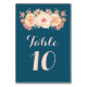 Navy Blue Peach Floral Wedding Table Number Cards