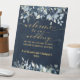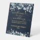 Navy Blue Peony & Gold Fancy Font Calligraphy Pedestal Sign
