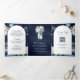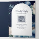 Navy Blue Peony Mason Jar QR Code Wedding Tri-Fold Invitation