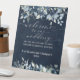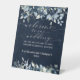 Navy Blue Peony & Silver Fancy Font Calligraphy Pedestal Sign