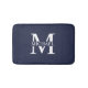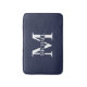 featuring personalised white monogram in classic serif font style with box of name in the middle of monogram on navy blue background.