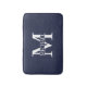 featuring personalised white monogram in classic serif font style with box of name in the middle of monogram on navy blue background.