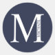 Navy Blue Personalised Monogram and Name Classic Round Sticker