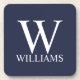 features personalised monogram and name in white classic serif font style on navy blue background.