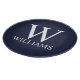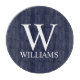 features personalised monogram and name in white classic serif font style on navy blue background.