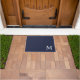 featuring personalised white monogram in classic serif font style with box of name in the middle of monogram on navy blue background.
