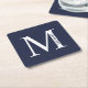 Navy Blue Personalised Monogram and Name Square Paper Coaster