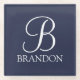 Navy Blue Personalised Script Monogram and Name Glass Coaster