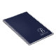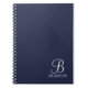 features personalised monogram in white classic script font style and name in white classic serif font style on navy blue background.