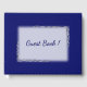 White accent guest book on navy blue with area for date and event information in spine, Matching wedding invitation suite in store.