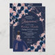 Navy Blue & Pink Butterfly Princess Quinceanera Birthday Invitation