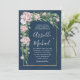 Navy Blue & Pink Dusty Rose Greenery Gold Wedding Invitation