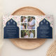 Navy Blue Pink Floral All in One Indian Wedding Tri-Fold Invitation