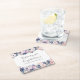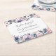 Navy Blue Pink Floral Botanical Engagement Party Square Paper Coaster