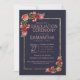 Navy Blue Pink Floral Gold Graduation Ceremony Invitation