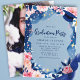 Celebrate the graduate's achievement with this elegant graduation party invitation. The design features a beautiful blend of navy blue and pink floral watercolor accents, creating a sophisticated and celebratory feel. A whimsical scattering of stars complements the modern script font, framing the event details. Personalise this template with name, date, location and RSVP specifics.
