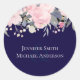 Navy Blue Pink Floral Modern Wedding Budget Classic Round Sticker
