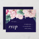 Navy Blue Pink Floral Modern Wedding Budget Invitation Postcard