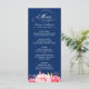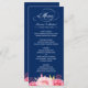Navy Blue Pink Floral Wedding Dinner Menu Template.