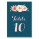 Vintage and elegant table number cards in navy blue with blush pink watercolor flowers. Customise these cards with your table numbers for a special addition to your wedding tables. Also suitable for birthdays and anniversary parties.