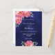Navy blue pink florals wedding invitation postcard
