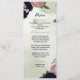 beautiful pink and navy blue flowers greenery botanical wedding menu.