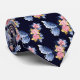 Navy Blue Pink Gold Rose Butterfly Pattern Tie