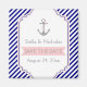 Navy blue, white stripes and anchor nautical wedding Save the Date magnet. A stylish striped pattern design with navy blue, white diagonal stripes, a grey anchor with a pink heart and rope and your text in a frame with a blush pink banner. Modern yet with a vintage look in a sense. You can change background and text colour choosing from over 200 colours from Zazzle colour chart. This classy design is a completely customisable template and is part of a wedding set perfect for a summer nautical or beach wedding.