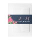 Navy Blue Pink Roses Flower Bouquet Floral Wedding Invitation Belly Band