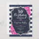Navy Blue Pink Silver Photo 50th Birthday Invitation