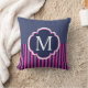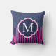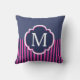Navy Blue Pink Stripes Monogram Cushion